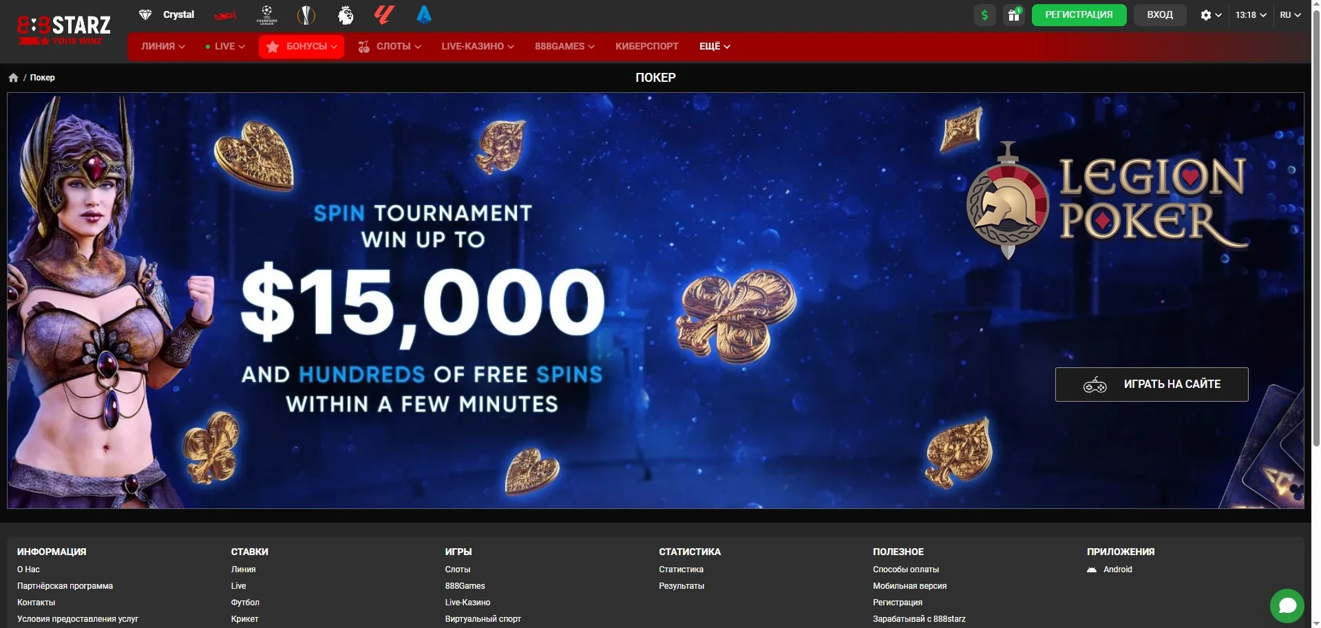 | Приветственный бонус | До 150 000 ₽ + 150 фриспинов | Только при регистрации с 888RUSSIA |